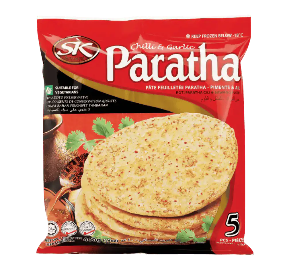 Spice meets flavor in our Chilli Garlic Paratha — a bold creation that excites the taste buds with every layer. Infused with the fiery punch of red chillies and the aromatic richness of garlic, this paratha is perfect for anyone who enjoys food with character. Pair it with a cooling yogurt dip, serve it with your favorite curry, or enjoy it on its own for a snack full of zest. With its perfect balance of heat and savoriness, the Chilli Garlic Paratha is a must-have for adventurous food lovers who crave something more exciting than the ordinary.